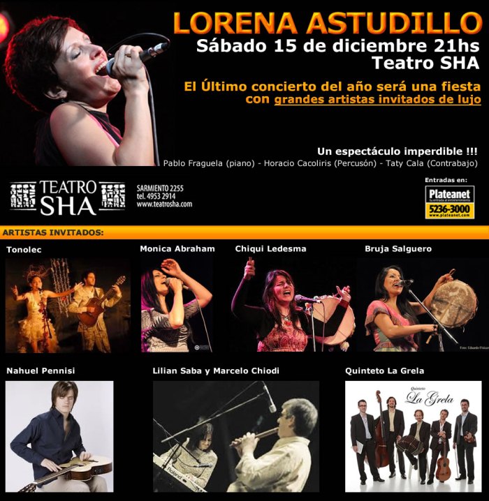 LORENA ASTUDILLO EN VIVOSABADO 15 DE DICIEMBRE 21.00HS